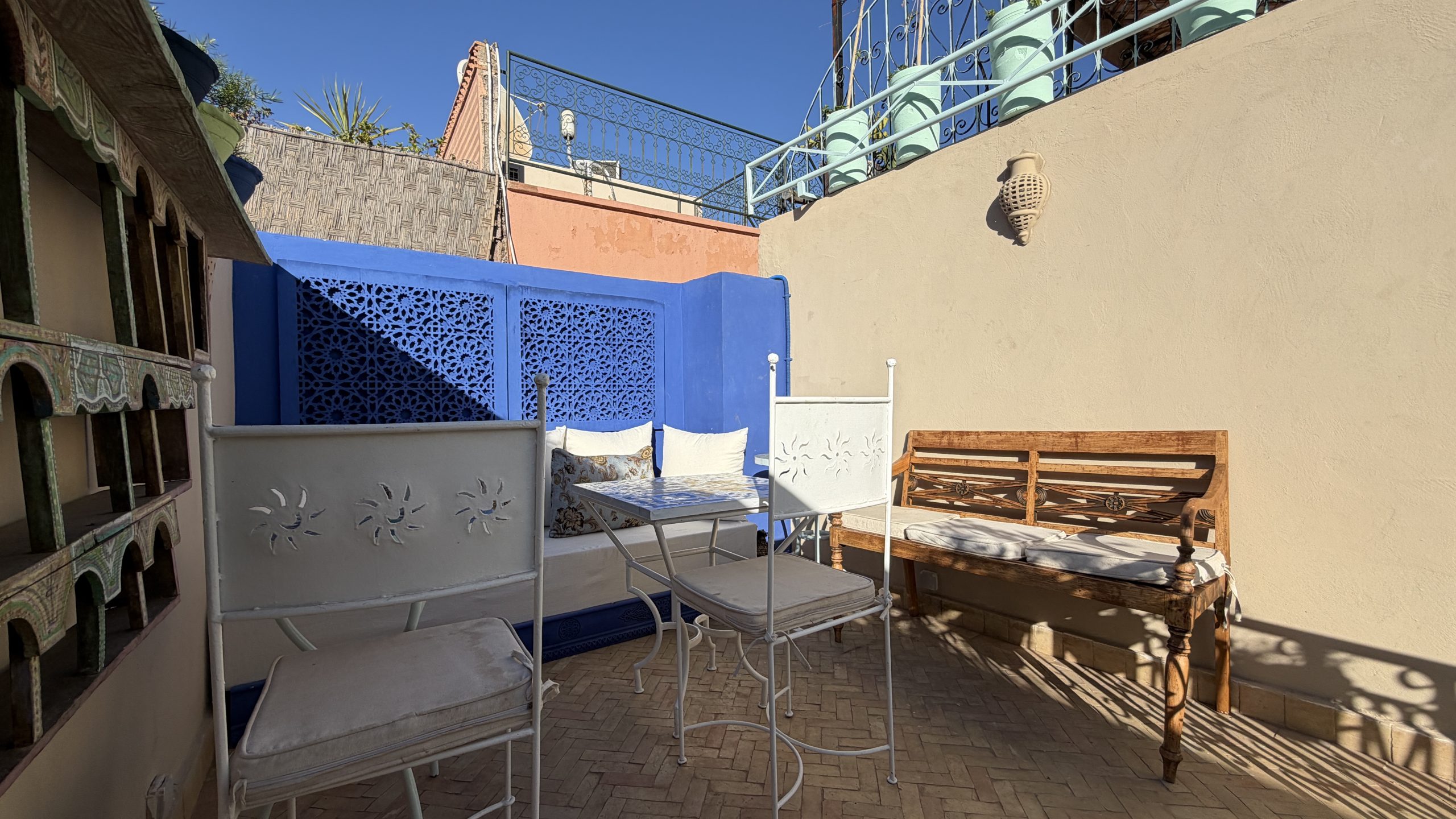 La Petite Maison features two full bedrooms, two bathrooms, two cosy living rooms, a fully equipped kitchen, and two beautiful terraces where you can relax, enjoy the sun, or unwind after a day exploring the medina. It is the ideal choice for families, couples travelling together, or guests looking for more privacy while still enjoying the warm hospitality and services of Riad Dar Saad.